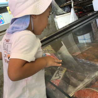 いつも子どもたちの給食でお世話になっている魚屋さん。「色々種類あるよー!」と見せてくれたり、うろこ取りを見せてくれたりした。子どもたちが普段から食べて、見ている「日常的な物」を通して見れたことにより、自分の中にはすでにあったけど繋がっていなかった事や物が知識として自然と落とせたんではないかと思う。